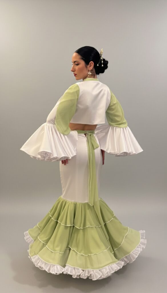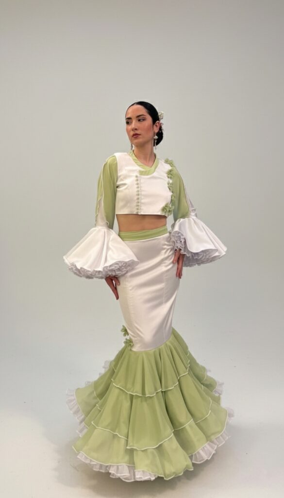 Este traje de flamenca ha sido realizado tanto en diseño, como en patronaje y confección, en trabajo en equipo junto a Lidia Heredia Espigares.